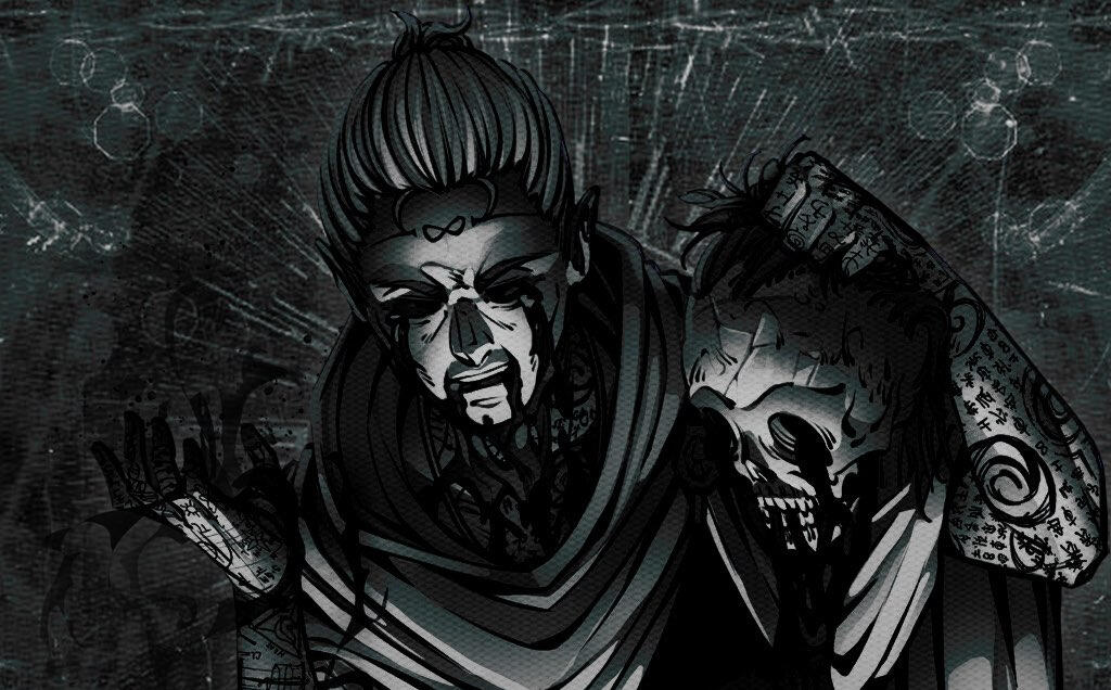aparência 1 sua pele é pálida e seu cabelo loiro, cujo, normalmente, utiliza um coque baixo para mantê-lo preso. veste uma camiseta de manga curta de tom cinza esverdeado, uma calça amarronzada acompanhada por correntes presas em sua cintura envolvida com uma pequena bolsa para armazenamento. em seus pés descalços, faixas brancas enrolam-nos, as quais seguem até sua panturrilha. conjuntamente, possui um longo capuz/manto branco que desce de seus ombros até suas coxas, sendo preso por um broche com sua marca cravada. de olhos fechados, é possível ver que nenhuma de suas tatuagens é visível.